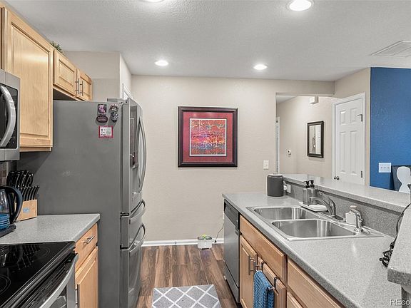 Located in Cottonwood South. This beautifully and well maintained 2 Bedroom, 2 Bath townhome style condo is located on the End Unit with 1 car attached garage. Private ground entrance and garage access with additional storage space leads into the home on the second floor. No neighbors below! This open floor layout has a large living room and dining room. The kitchen features a large kitchen island, lots of cabinet space, and pantry closet. The primary bedroom with en-suite 3/4 bathroom and a large walk-in closet. With an additional bedroom and 3/4 bathroom. The secondary bathroom has an rarely seen Jetted Tub! Laundry closet with Full size Washer and Dryer (included). Recent upgrades include: New Floors, Newer Water Heater, Toilets, Microwave, Stove/Range, and Refrigerator. This one won't last! Schedule your showing today! This wonderful community is close in proximity to Cherry Creek Trail and Parks. Perfect location with access to Chambers, C-470, I-25 and more.