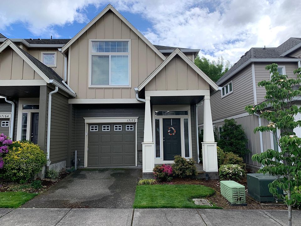 Fantastic Town Home, 1/2 mile to MAX, near Nike and Intel. This 3 bdr, 2.5 bath Town Home offers laminated hardwood floors on the main level, island, gas fireplace, new refrigerator/washer/dryer, slider to the fenced backyard, bonus area on the landing area, could be used as office or play area, master suite with walk-in closet, dual sinks, vaulted ceilings, and ceiling fan. Upstairs are two additional bedrooms, and laundry room. Forced Air Gas Heat, 1 car garage, A/C, landscaping (front) maintained by HOA, high speed internet included! Club house with swimming pool, hot tub, and big screen! Community Center also has playground and exercise room. Directions: Baseline, South on 170th, right on Berkeley. By Appointment only. Please do not disturb the existing tenants Owner pays all Utilities. High Speed Internet included in the rent