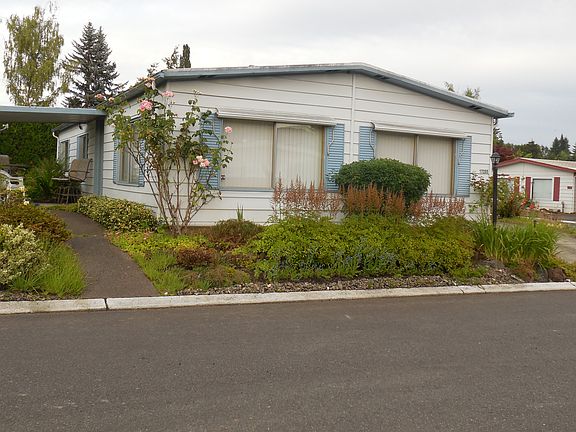 Come and see this Wonderfully maintained corner lot manufactured home, in a warm, friendly, welcoming senior park. This home offers an open floor plan with large picture windows in the living room and dining room. Nice carpets and linoleum throughout the home. Kitchen is roomy and has all expected appliances with lots of counter space. Home has washer and dryer included. Master bedroom has nice sized mirrored closets and master bath. Second bedroom can be used to enjoy any hobbies you may have. The home features a newer large AC/Heat pump that will keep you cool this summer and warm in the winter. Home has storm windows to keep the home better insulated. Beautiful gardens surround this home with an automatic sprinkler system for effortless upkeep. Patio/Deck is covered, private and secluded. It includes two sheds for extra storage and a covered carport that holds 3 cars. Home is located in a 5 star 55 & Older senior community. There is onsite maintenance. The wonderfully maintained condition of this home and its corner lot makes this home worth much more than the asking price. Price is flexible and negotiable with cash offer. Call Patricia (503)856-4607 for viewing and make your best offer.