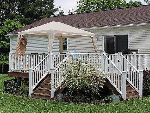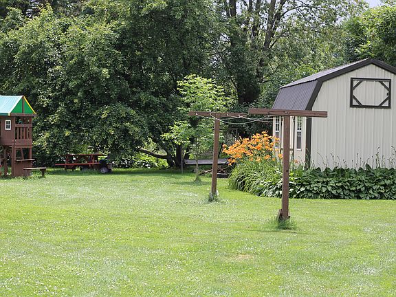 Beautiful single family home in the country, a modular, built in 2006 on 1.03 acres. 3 bedrooms, 2 full bathrooms. This house has a full basement which is mostly finished, just about doubling your living space! Basement includes a large game/family room, 2 spare rooms, storage room, utility room, and work area. The first floor of the home has an open concept layout with a large kitchen and bar seating 3. The master bedroom provides a large walk-in closet and has a bathroom which includes a garden tub and walk in shower. The laundry room is on the first floor. Gorgeous hickory hardwood floors are present throughout a large portion of the first floor. Outside has been well landscaped with easy to maintain perennial flower beds surrounding the house and large deck (built 2017)- perfect for entertaining. 16 x 10 shed, includes a storage loft, has metal siding and roof. Forced air heating with propane furnace installed in 2011, heats both main living and basement.