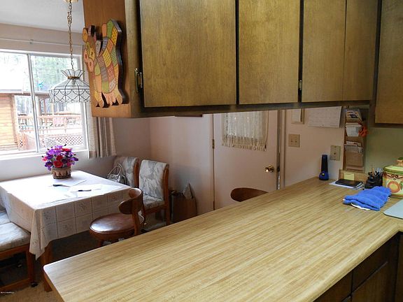 Forest Living...only one home away from the National Forest. Views Galore. Three bedrooms, one and a half baths, open living space to kitchen and dining. Wonderful wrap Trex decks, covered back patio, open front patio. Fenced yard. Carefree ease vinyl siding. House has lightening rod. Stackable washer/dryer in hall. Easy Care home on an extra large lot very close to forest. What more can you want?