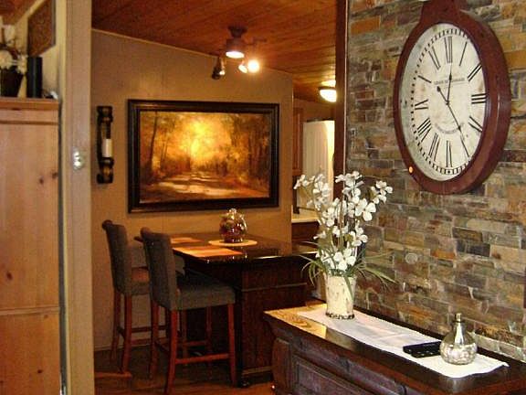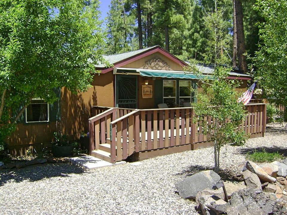 Architecturally Unique Remodeled Manufactured Home shows like new. Full-time home has tie downs & qualifies for VA, FHA financing. 3 Bedrooms and 2 Baths with Northern Arizona Room addition. Forced Air propane heat and central A/C with Smart remote thermostat. Vaulted T&G Wood Ceilings. Northern Arizona room has EZ Breeze windows. Propane fireplace in living room and propane wood stove in Northern Arizona room. Top end stainless appliances in kitchen. 10 x 12 ATV garage and attached electric awning for shaded parking. 10 x 12 workshop in back yard with electricity and lights. 8 x 10 storage shed with electricity and lights. 4 decks on South, West & 2 East decks all Trex. Attached electric awning on the front deck. Completely enclosed back yard with Trex fencing. Propane fire pit.