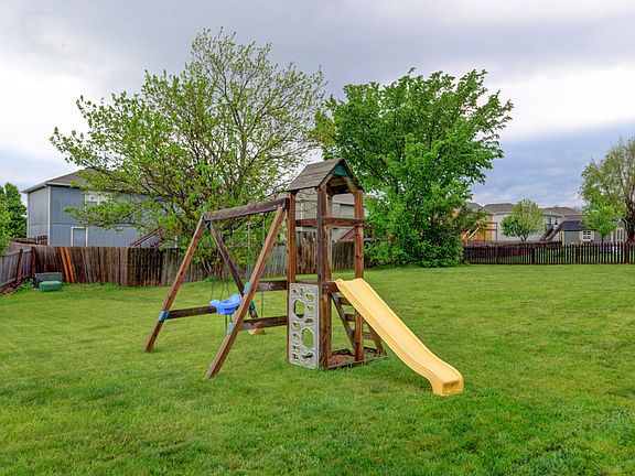 What a Treat! Nice family home with all bedrooms on the same level. Roomy kitchen and dining area that opens to the living room. The walk-out basement is finished and has a second full bathroom. Don't despair-there will be brand new carpet in the family room. It has already been ordered and waiting on installation. The laundry is located in the utility room on the lower level. The family room walks out to a large partially fenced backyard with playset and raised garden beds.
