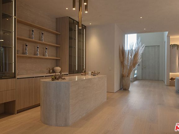 Welcome to a private, design-forward architectural masterpiece in the Encino Hills. Gated, secluded, and set on nearly 25,000 sq ft of lush grounds, this newly built 8,500+ sq ft modern sanctuary delivers uncompromising luxury with effortless indoor-outdoor living, curated natural textures, and a resort-inspired backyard. A dramatic double-height entry sets the tone sculptural lines, gallery-scale volumes, and floor-to-ceiling glass flood the interiors with warm natural light. An organic material palette of travertine, stone, and custom millwork forms a calming, tonal aesthetic that feels as much a world-class resort as it does a home. The bespoke chef's kitchen is a showpiece of modern craftsmanship, wrapped in custom cabinetry with integrated Miele appliances, a monumental stone island, and hidden prep spaces. Vast living and dining areas open seamlessly to the outdoors through oversized pocket doors, creating a true California indoor-outdoor flow. The primary suite is a private retreat, featuring a spa-level bath, boutique-style dressing room, and a serene terrace capturing tree-top and canyon views. Five additional en-suite bedrooms offer exceptional scale and privacy, complemented by a state-of-the-art screening room, wellness / fitness space, and a smart-home system controlling lighting, climate, audio, security, and more. Outside, the grounds feel like a boutique resort: a sparkling pool and spa, open-air lounge areas, a full outdoor kitchen and bar, and a dramatic sunken fire pit carved into the landscape. Mature olives, sculpted grasses, and minimalist hardscape blend into the surrounding hillside for complete tranquility. A rare combination of architectural pedigree, privacy, and natural serenity yet moments from the Westside, Ventura Blvd, and the best dining, shopping, and schools in the Valley. An uncompromising statement property for the buyer seeking world-class design and an effortless luxury lifestyle.