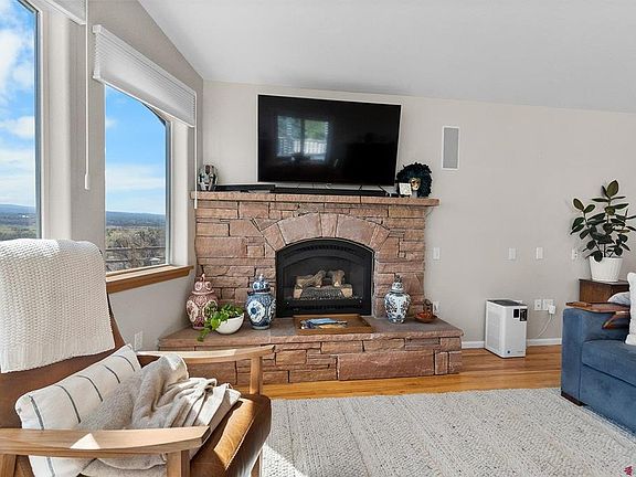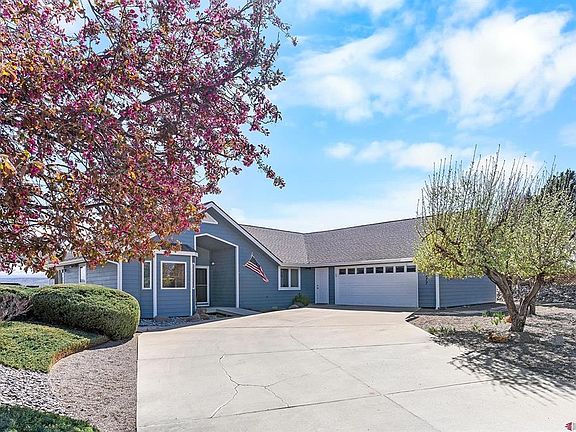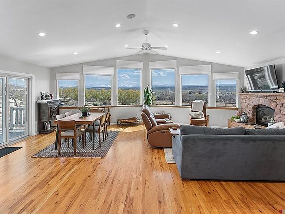 Prepare to be captivated by truly unbelievable, unobstructed views of the majestic San Juan and surrounding mountain ranges—the very vistas that make Montrose such a sought-after destination. Perched in a prime south-side location, this warm and inviting single-level home welcomes you with expansive windows that perfectly frame the breathtaking scenery from the moment you walk in. Cozy up by the gas fireplace in the spacious living and dining area as you watch the sunrises, alpenglow and enjoy the average of 245 days annually of Colorado sunshine! The bright kitchen features a charming bay window with bench seating, hard-surface countertops, a skylight for natural light, and an Aquasana under-sink 3-stage water filtration system for fresh, clean drinking water right from the tap. Immaculate hardwood floors run throughout the main living space, complemented by new LED recessed lighting and freshly painted interiors, including trim and doors. The vaulted ceiling master suite includes more spectacular views, access to an additional deck area, while the ensuite provides a double-sink vanity, step-in shower, private toilet room, and a walk-in closet with a skylight hidden behind dual pocket doors. The master bedroom and two additional bedrooms all have ceiling fans with one of the bedrooms having two closets. The main bath offers a separate vanity area and a convenient pocket door separating the toilet and shower space for guest privacy. Adding to the home's comfort is a new furnace and A/C unit, whole-house humidifier, a WiFi-enabled Ecobee smart thermostat, encapsulated crawl space with added insulation and remote-controlled blinds in the living room. Beautifully maintained with a newly painted exterior, this home invites you to unwind outdoors under the pergola covered deck while soaking in the spectacular scenery. The easy-care yard features a sprinkler system, producing apple trees, and a tidy shed for your tools. An oversized garage offers built-in cabinetry, attic storage, and a handy utility sink. High-speed Elevate internet is in place—ideal for working from home or streaming your favorite shows. Just minutes from shopping, restaurants, schools, and the Montrose Recreation Center, this home offers the perfect balance of close-to-town convenience and outdoor adventure. Enjoy world-class skiing, snowmobiling, and ice climbing in winter, and gold medal fly fishing, boating, hiking, jeeping, mountain biking and camping in summer—all within easy reach. The Montrose Regional Airport keeps you connected easily to anywhere. Make this rare find—featuring million-dollar views and year-round adventure—your next home.