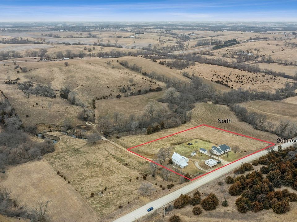 Come enjoy country living with a great commute to Des Moines! This home features over 2000 square feet of living space with the master bedroom on the main level and an additional office or bedroom. Enjoy the views from the large, sunken living room or enjoy your morning cup of coffee from the spacious sunroom which will sure to become your favorite room in the house. The finished space in the attic features 2 additional bedrooms. Other features include newer windows, new carpet in sunroom, new interior paint, new furnace, new roof, a single detached garage, a 2 car detached garage and a 24x31 barn. This acreage would be perfect for a small hobby farm with new fencing for horses or cattle. You can also work from home with fiber optic internet. Come take a look today! All information obtained from Seller and public records.
