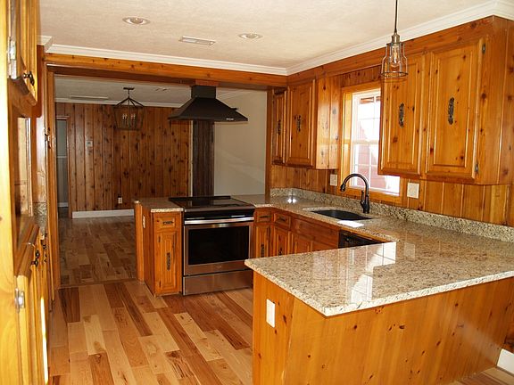 Great Country Setting! Beautiful Inside! Part of this beautiful home was moved to this location, stripped down and almost completely rebuilt SOLID. Possible Pond Site; NEW metal roof, wiring, plumbing, windows, baths, kitchen appliances, granite counter tops, new 27 x 27 attached carport, on 7.98 acres with approx. 2 ac cleared. Original wood kit cabinets refinished. New front porch with steel ceiling (same as attached carport). Oil rubbed bronze kitchen and bath fixtures; Laundry room will hold all of your supplies/hobby items, 300+ ft well, 55 gal/min; Centipede lawn, planted Leland Cypress for buffer; Hickory wood floors were put in living areas and master bedroom; Some original wood floors remain; Although this blends in like a modest cabin from the outside appearance, you will be pleased with the quality of materials and the space; Turkey & deer on the property; Owner Financing Available