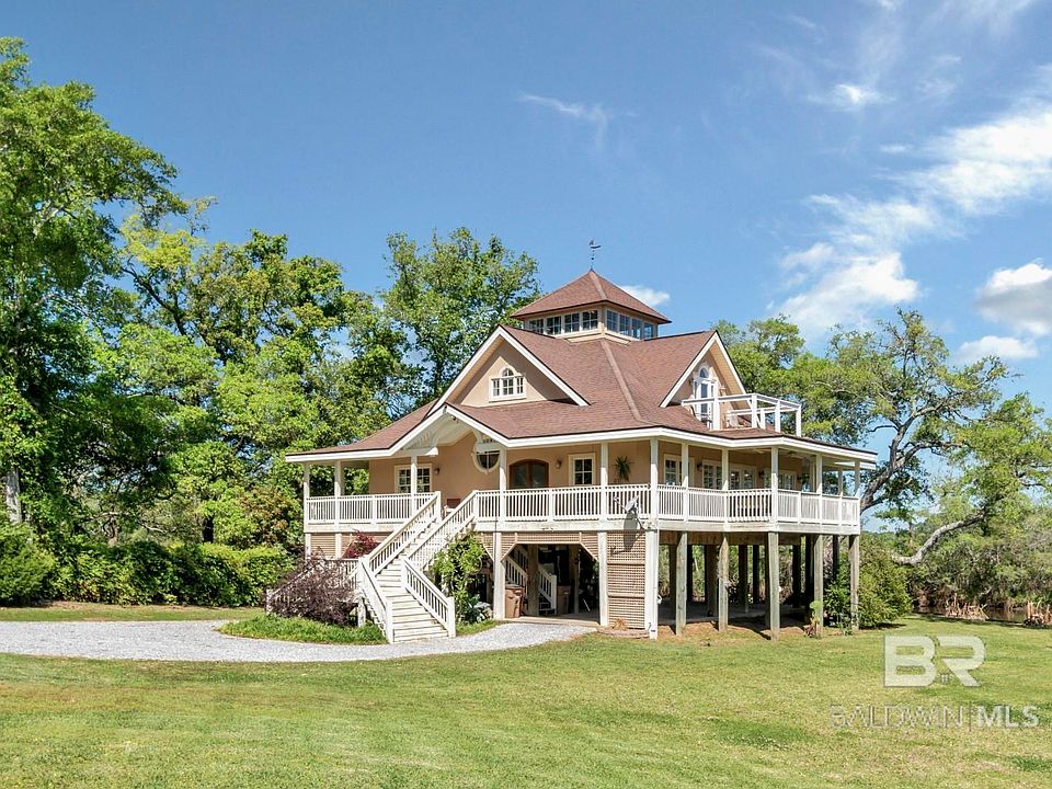 Experience tranquil waterfront living at its finest in this spectacular property nestled at the mouth of Dog River offering quick access to the river, Dauphin Island, and Mobile Bay down to the Gulf of Mexico. Architecturally designed by Mike McLeod and custom-built in 2008, this island-style coastal cottage offers unparalleled access to nature while being located just minutes from I-10, I-65, downtown Mobile, Buccaneer and Mobile yacht clubs, restaurants, retail shops, and entertainment. Boasting breathtaking views of the marsh, river, and abundant protected wildlife, this sailor's paradise provides deep water access for boat dockage, making it ideal for water enthusiasts. Entertaining is effortless with the open-concept light filled living area and seamless indoor-outdoor flow onto the covered wrap-around porches. The gourmet kitchen is a chef's dream, featuring custom cabinetry, granite countertops, high-end stainless-steel appliances, breakfast bar, and dining room. Recently replaced refrigerator, washer, and dryer convey with the property. With two bedrooms and two full baths on each level (including renovated bathrooms), every inch of this home exudes comfort and style. Generously sized bedrooms offer access to the porches, while a third-floor observation loft provides panoramic views of the river and Mobile Bay. The loft has windows on all sides, and is ideal for a workout, reading, music, art, etc. Relish in the serenity of sunrise and sunset from the expansive porches, listening to the sounds and beauty of nature. Elevated 16.3 feet above high tide and offering covered parking for four cars, this meticulously maintained property is ready for you to call home. Don't miss out on this rare opportunity to own a piece of paradise. All updates per the seller. Listing company makes no representation as to accuracy of square footage; buyer to verify.