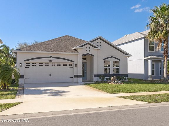 Absolutely Stunning home located in highly desirable Manchester Lakes. The property is filled with upgrades thru out the whole home including Luxury Vinyl Plank Flooring. A new roof and exterior paint completed in 2023. The 9.4'' ceilings and Crown Mouldings in the main living areas gives the home a very spacious feeling. This is an awesome floorplan for entertaining and holiday get togethers. The large gourmet kitchen has 42'' Maple cabinets, pullout base cabinet shelves, Granite countertops, built in wall oven, Microwave, cooktop, and a Frigidaire 27.8 CFT with dual icemakers and French doors. There is a convenient key drop station when you enter from the garage with 42'' cabinets and a beverage fridge. The dining area overlooks the Great Room. The main suite offers a beautiful cove ceiling, Crown Moulding, and custom lighting and fan. The main bath features dual five-foot granite vanities with sinks, Floor to ceiling tile in shower, Frameless glass enclosure, and rain head. There is a cozy sitting area located between the two guest bedrooms. The laundry room has a deep sink and 42" cabinets. Additional features include Roman shades thru out except the sliding glass doors, 12X10 additional patio slab 2023, Rain Soft full house water softener, Rain Bird irrigation system with private well, Security system (Owned), Screened Lanai, Hurricane rated lead glass front door, Electrical floor outlet in Great room and Den, and Electrical and wall chases for wall mounted TVs. Come check out this gorgeous home conveniently located to shopping, schools, entertainment, restaurants, I-95, Melbourne airport and the beautiful beaches!