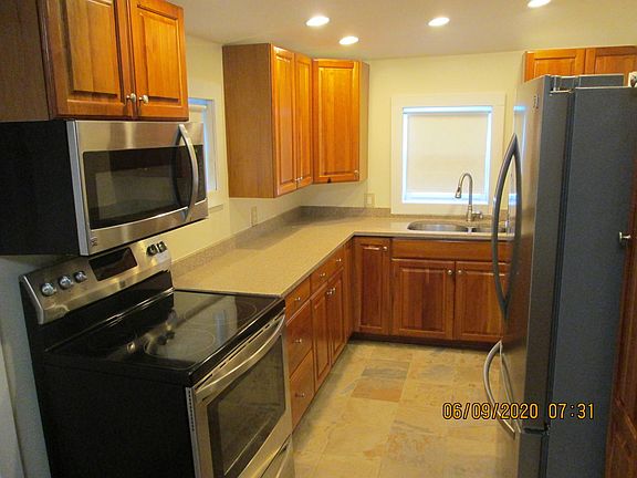 Nestled off the main road within walking distance of the Milford Bridge and downtown is this totally renovated 1800's colonial. The entire inside is new or has been redone! Downstairs is the Living Room with lots of natural light gorgeous hardwood floors, a nonworking fireplace and a bar area with a sink. The Dining Room offers an exposed beamed ceiling, a walk in fireplace for ambiance (non working)and a first floor powder room. The renovated Kitchen has a tile floor, all brand new (1 yr)cabinets, SS fridge (armoire style), range, quartz counters, under-mount sink and lots of storage. The first floor laundry is off the kitchen as well as access to the level and spacious yard with new paver patio and shed. Upstairs are 2 bedrooms each with their OWN brand new bath - one has stall shower and the other a tub/shower. One bedroom has an area that could be a walk in closet or possibly an office - All the electric has been updated, windows have been replaced for energy efficiency, off street parking, 2a/c units for your use are included. Fully floored attic for storage and a partial basement. Enjoy the character of a historic home but the amenities of a new one! This one won't last! Sorry NO PETS!