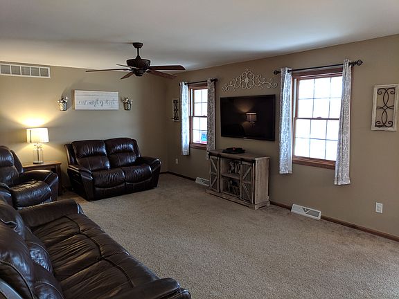 This 2010 built open concept utility friendly home features 5 bedrooms & 3 full bathrooms. On the main floor you will find an abundance of natural light that shines thru the ever reliable Andersen windows, providing you w/comfort in all seasons. In addition to the energy efficient windows, the 2x6 walls will help you keep warm in winter & cool in summer. The master side of the house has hardwood flooring in the MBR, it's own large bathroom w/walk-in closet & jetted tub. On the LL you will find a huge rec room w/high ceilings, sprawling hardwood floors, a wet bar & a full 3rd bathroom. The LL also contains a 5th bedroom with its own walk-in closet. There is no worry of lack of storage space! 100% maintenance free exterior, storage trusses in garage, new water heater, and security cameras.