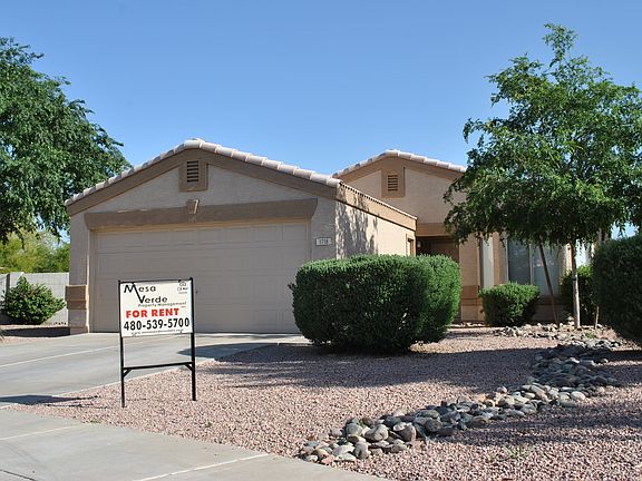 Nice 3 bedroom, 2 bathroom, 2 car garage, single story with 1034 square feet. Neutral paint and newer carpeting. Ceramic tile in the living room, kitchen, and hallway. Ceiling fans throughout. All kitchen appliances provided. Washer/dryer in the kitchen. The front yard has desert landscaping with grass (sod) with gravel border in the backyard, auto drip and sprinkler systems. Rent is $1095 with a refundable security deposit of $1000 with good credit. Application fees are $35 per adult applicant. Owner pays HOA fees, resident is responsible for utilities and maintaining the landscaping. 12 or 24 month lease available. No pets please.