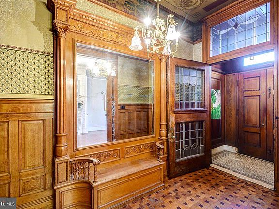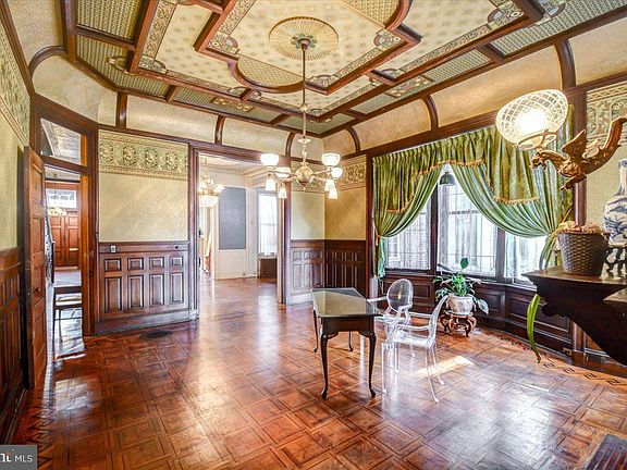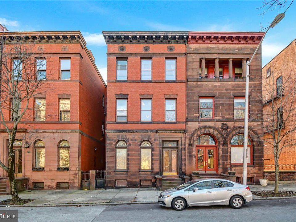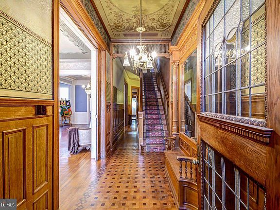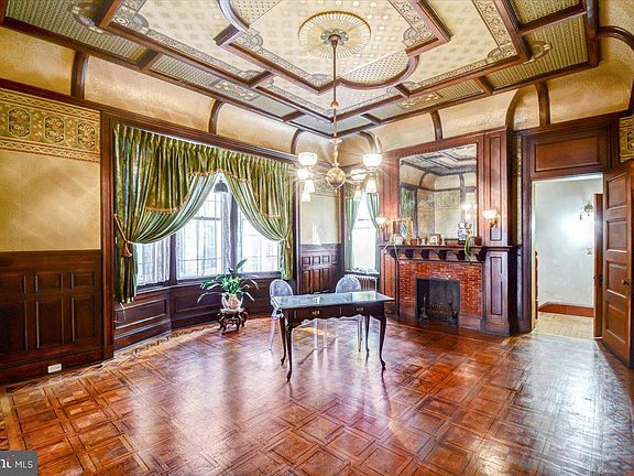 Exclusive opportunity in historic & Coveted Bolton Hill’s. This expansive, multi unit, Victorian, Grande Dame masterpieces offers 7,736 square ft. of living space spanning 4 levels. In fact, a historic district that Balt City gov't website describes as “one of the most architecturally distinguished late 19th to early 20th century neighborhoods in Balt City." This historic Brownstone features French double door entry w/ custom stone & stained glass arched windows detailing which guides you into a grand entry, marble mosaic vestibule that flows into a foyer rich in detail w/ a custom wood carved builtin, hand painted murals, & parquet fls, & according to Balt City govt’s website, is located in the block w/ the most significant, large, & ornamental complete houses still in existence. These 19th century mansions overlook a French boulevard style park & their elaborate brown stone detailing are evocative of an Italian Renaissance palazzo. The exquisite parlor features two (2) flr to ceiling windows topped by stained glass framing a pier mirror w custom carved woodwork, custom hand plastered frieze & silk screened neoclassical ceiling detailing. Flowing through to the next room, the neoclassical & baroque architectural design cascades from the one of a kind Bradbury & Bradbury hand painted, ornate ceiling work recreated after 1880s prominent architects-Audsleys of London & NY -designs. Multi-layer hand collages, custom plaster frieze over wainscotting frame custom marble fireplaces (FP). The dining rm is replete w/ cast sconces, carved wood moldings, layers of silk screened ceiling designs interspersed w custom carved plaster and wood moldings. Enfilade rms w/ working pocket drs frame a series of chandeliers. Marvel in the full baths w/ chandeliers & marble mosaic flooring evocative of Italian Baths. Custom carved fireplaces all w/ incredible detailing incl hand painted & multi inlaid cameo medallions; 3 cast iron, claw foot tubs; bronze radiator covers w/ marble tops; parquet flooring; stained glass transoms; custom carved & beadboard wainscotting; & marble & brass sinks. Custom historic recreation solid wood kitchen cabinets by Kountry Kraft Kitchen, Newmanstown, PA, w hidden modern conveniences like sliding shelves & lazy susan. Front of the property overlooks the mature trees of the park & meandering walkways. Backyard features garage parking & hard landscaping, w/ several brick planters filled w/ evergreen ground cover, & assorted plants such as magnolia trees, a holly bush, an ornamental evergreen fir, elderberry bushes, paw paw trees, bamboo, firs, hostas, wild violets, & low draping shrubs. Several brick planters are strategically positioned on brick platforms perfect for planters, seating & dining areas. Ivy & rambling roses cover the garage. Boston ivy covers the side of house & fence creating a lush retreat. Clematis vines drape over the fence lightly scenting the air. Bowers of double blossom cherry trees drip over the courtyard which may be enjoyed from Sunroom/breakfast nook, 2nd level balcony or side deck. Breezeway along the side of home offers bright & airy rooms throughout & private access to lower level which is predominantly above grade. Side garden leading to a wrought iron inspired porch w/ elaborate railings & Italian lights w/ storage underneath. Lower level offers many options & potential for storage, workshop, home office/s, or possible residential rental as there are 2 areas for full baths, plenty of storage, & 3 side exterior access points: 1 from inside home/side deck, a 2nd from front breezeway, & a 3rd exterior door from back of home. Being sold "As Is". Licensed multi-unit Bolton Hill gem in Bolton Hill Nat'l Historic District, reflects the historic & architectural heritage of the area. Furthermore, it is conveniently located w/ easy access to Penn Station (DC, Philly, or NY), light rail, Metro, JHU shuttle, Hopkins, MICA