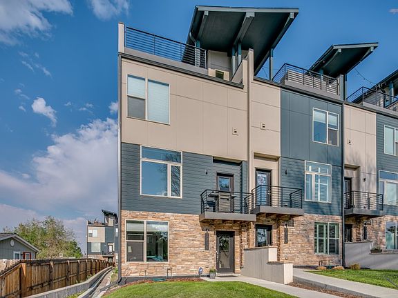 Fantastic townhome in Edgewater! Spacious open floor plan with guest bedroom on the 1st level. The second level hosts the kitchen with stainless steel appliances, quartz countertops euro-style cabinetry, Spacious kitchen island, Pendant lighting, Induction cooktop and luxury wood plank flooring that expands to a living room with an abundance of natural light. The 3rd level has two bedrooms, one of the bedrooms is a master bedroom with a walk in-closet and contemporary designed master bath. The rooftop is just a few steps away from the bedroom and because this is an end unit you could enjoy unobstructed view of the city and mountains. This unit also has a 2 car attached garage. There are NO HOA or management fees. Located just a few blocks away from Sloan's Lake, Downtown Edgewater, and all the new retail including the new Edgewater Public Market, Alamo Drafthouse & Cinema, Sloan's Tap and Burger, and much more.