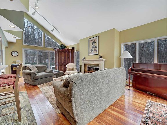Perched on a lovely wooded knoll, this nicely decorated home sits in a quiet location and with plenty of privacy. The great room has a vaulted ceiling and wood-burning fireplace, which is open to the kitchen and dining room. It has plenty of light with windows on all sides and opens the large deck. There is a spacious main floor master suite. Upstairs is a very large suite with a wood-burning fireplace, large en suite bath with dual sinks, spacious walk-in closet and private deck. The third bedroom suite is in the walkout lower level which is currently being used as an exercise room. Other features include a well appointed kitchen, hardwood floors, front and back decks and attached two car garage. A one time initiation fee of $10,000 and monthly dues of $424 grant you full benefits of Birchwood's 27 holes of pristine golf, tennis, pickle ball, bocce, fitness center, heated swimming pools, nature trails and a vast array of activities and amenities.