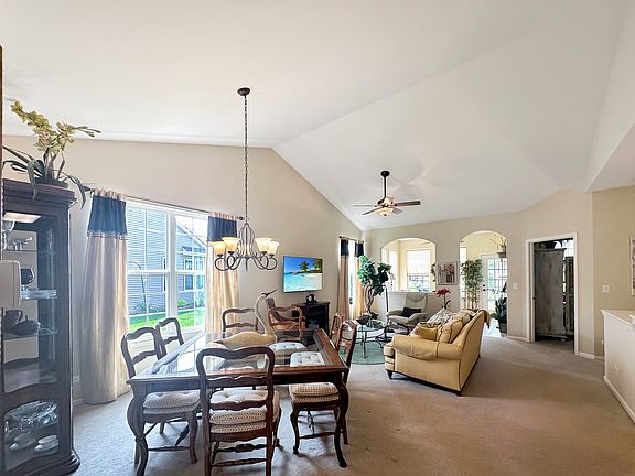 Welcome Home to this beautiful upper scale Duplex in highly sought after Active 55+ Carillon at Cambridge Lakes Community that is move in ready! No need to wait or pay premium in Builder upgrades when this one has it all! Fantastic soaring ceilings are through-out this home. Featuring an open concept design, this home features large entry, Open kitchen with breakfast bar, ample counters & cabinet space, cozy breakfast nook and flows into the large Living & Dining Room combo. The owners suite is light & bright as well as large in size. It features 2 large closets, linen closet and a beautifully upgraded on-suite with dual vanities, large separate shower and tub. The 2nd bedroom is ideally located in the home just off the 2nd full bath and features large closet space. In addition, Offering an added Sunroom that opens to the backyard as well as Office/Den Flex room, this home offers plenty of additional rooms as well as loads of storage. Located is one of the highly desired 55+ communities in the area, Carillon at Cambridge Lakes features a state of the art community center, Indoor & outdoor pools, fitness center, game activities, parks, paths as well as an abundance of activities available. Situated in a golf course community surrounded by ponds and open space, this is a home & community you don't want to miss. Mins from shopping, I90, route 20 and more - Don't miss this opportunity to get a fantastic deal on this gorgeous home!