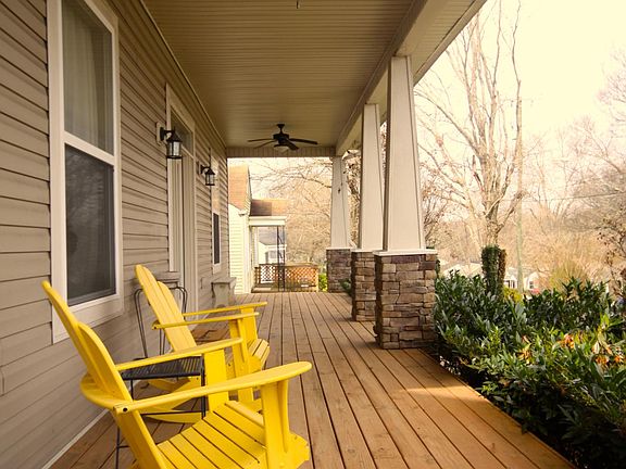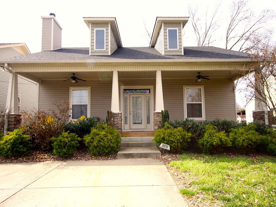 This craftsman style house is waiting for you to call it home. The front porch is very welcoming with a swing and plenty of room for outdoor furniture. Once you walk inside, the open floor plan boasts vaulted ceilings and lots of light. There are hardwood floors throughout the living space and carpet in both bedrooms. For the cold winter nights, the living room has a real wood burning fireplace. Continue outside and the back porch has plenty of space to entertain. The large backyard is a pet owners delight. Owner pays for landscape. Owner pays for landscape