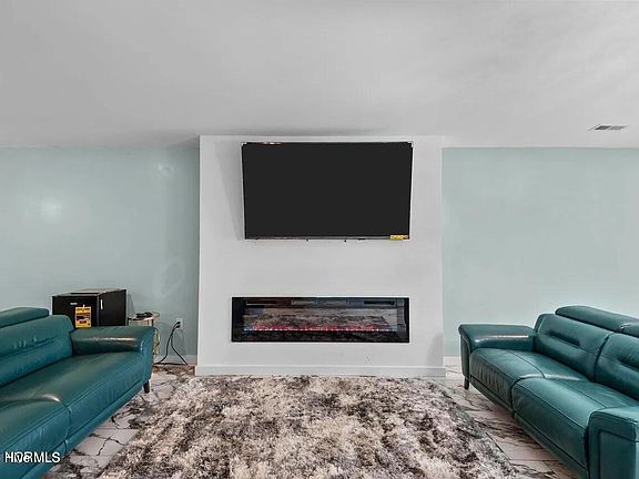 Step inside to a bright, open-concept living space defined by high ceilings, an inviting fireplace, and an abundance of natural light. The home's elegant design is complemented by features, such as stunning marble porcelain flooring, wide doorways (all the home needs to be ADA compliant is a ramp in the front), floating vanities, a truly mind-blowing jetted tub, and large luxurious showers.
