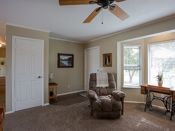 This charming 3-bedroom home is surrounded by a beautiful yard with mature trees and a large garden complete with grow boxes and five fruit trees. It has a beautiful master bedroom with a walk-in closet and box windows with storage space underneath. A few features you'll like about this home are: Newer high-quality carpet, new stainless steel gas range, stainless steel fridge, custom-made wrought-iron railing in the dining area, freshly painted downstairs bedroom and bathroom, nice deck, large RV pad with in-ground basketball standard, in-ground swings, and a family room/play room downstairs.