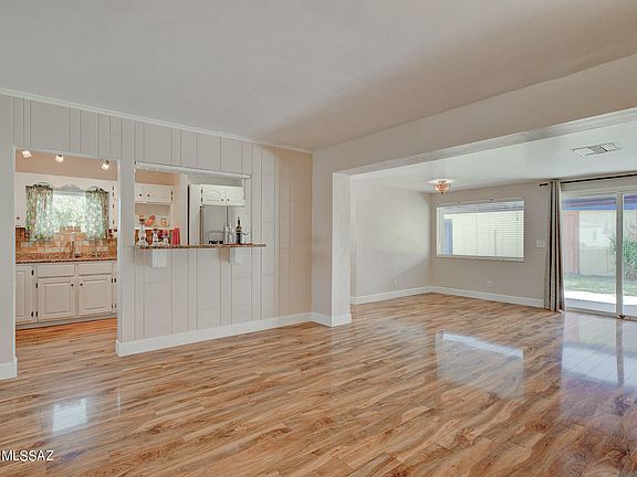 Louis Lane is a charming single-family home located in the desirable Frontier Village. This lovely property is situated on a spacious lot and offers three bedrooms and two bathrooms, making it the perfect home. As you enter the home, you'll be greeted by a warm and inviting living room that features beautiful laminate wood flooring and plenty of natural light. The adjacent dining area is perfect for hosting dinner parties or family meals and offers easy access to the backyard through a sliding glass door. The kitchen boasts plenty of counter space, modern appliances, and ample storage, and granite counter tops. The primary bedroom is spacious and offers an en-suite bathroom, while the other two bedrooms are comfortable and well-appointed, with plenty of closet space. and easy access to the second full bathroom. The oversized backyard, offers a large covered patio, perfect for relaxing and enjoying the beautiful weather, a detached garage and workshop as well as mature plants. Louis Lane is conveniently located near shopping, dining, and entertainment options, and offers easy access to major roads and highways, making commuting a breeze. Don't miss out on the opportunity to make this beautiful Tucson home yours!