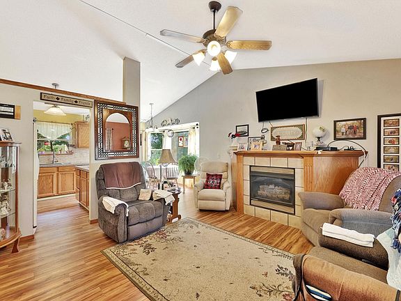 Welcome to this charming 4-bedroom, 3-bathroom ranch-style home in a desirable Derby neighborhood. As you step inside, you'll be greeted by an inviting open floor plan with vaulted ceilings and an abundance of natural light. The spacious living room features attractive wood laminate flooring and a cozy gas fireplace, perfect for relaxing evenings. The well-designed kitchen offers plenty of cabinetry, laminate countertops, and a convenient eating bar. Adjacent to the kitchen, the bright dining area boasts large windows and a sliding door, creating a seamless flow between indoor and outdoor living spaces. The primary bedroom features vaulted ceilings, double closets, and a en-suite bathroom complete with a jetted tub and separate shower. Another bedroom and full bathroom complete the main level. Downstairs, you'll find a fully finished basement that includes a expansive family room ideal for entertainment and gatherings, two additional bedrooms, and a third full bathroom. Step outside to enjoy the very large, fenced backyard – a perfect space for pets, play, or gardening. The new patio and large back deck provide excellent areas for outdoor entertaining and relaxation. Mature shade trees add beauty and privacy to the already great backyard. For car enthusiasts and those needing extra storage, the home features a large driveway and an attached 3-car garage. Located in Derby, this home offers the perfect blend of comfort, style, and functionality. Don't miss this opportunity to make this delightful ranch your new home. Call today to schedule your private showing!