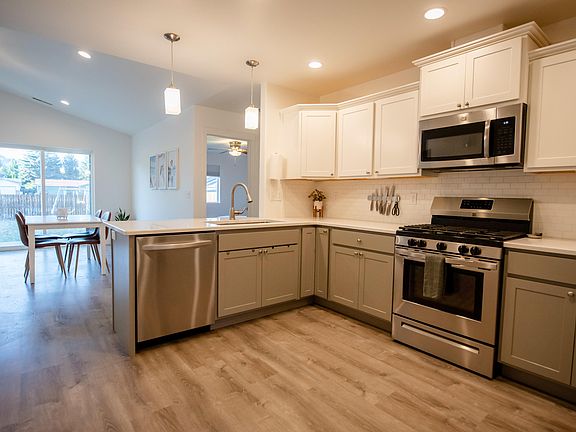 Great layout and finishes in this 2019 built single level home in Sandpoint with Mountain Views. Three bedrooms, two bath, with a open floor plan and vaulted ceiling, natural gas fireplace in the living room. Kitchen has subway tile, quartz counter tops, and stainless steel appliances & a breakfast bar. Tile floors in the laundry room, master & guest baths. Master bathroom has double sinks with quartz counter tops, walk-in closet, along with a additional second closet. Laminate floors through out the home. Covered front entry and deck off back of the home along with a fenced back yard. Easy location to library, parks and downtown.