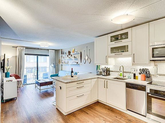 Gorgeous 1BR/1BA contemporary condo with a private balcony and updates galore in the heart of Dupont Circle. Beautiful hardwood flooring and a sophisticated palette create a striking welcome to the thoughtfully planned layout. The fully renovated kitchen has open flow, luxe white cabinetry, stainless steel appliances, granite countertops, tile backsplash, and snack bar. Sliding glass doors fill the home with natural light and lead to a private balcony perfect for a table and chairs. Relaxed elegant styling continues in the spacious bedroom suite with a generous closet and vanity area leading to the updated tiled en suite bath. Webster House owners enjoy resort-style common areas and top amenities in a location that can’t be beat. Residents are treated to a rooftop pool, concierge, private courtyard, most included utilities, laundry, and pet-friendly homes along with optional storage, bike storage, and garage rentals. Home is on a quiet residential street next to 17 th Street surrounded by Dupont favorites Annie’s, Floriana, Agora, and Duke’s Grocery. The location offers the best of everything with moments to easy errands, shopping, nightlife, and crave-worthy dining and less than a ½ mile to the serenity of Rock Creek Park. Metrobus on the corner and Dupont Circle Metro only two blocks away simplify downtown commuting. All utilities included in condo fee.