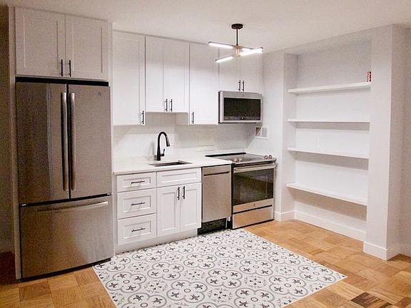 Inviting Dupont Circle studio for rent. Completely renovated in 2019. All new Kitchen with island (on casters) and All new Bathroom. Beautiful original (refinished) parquet wood floors with new tile in kitchen and bath. Open floorplan with a white color scheme and black and brass accents. Balcony with wonderful view of Dupont's rowhouse architecture and rooftops. Community patio and rooftop pool. Laundry room on every floor. Building has secure key fob entry, package notification and front desk personnel.