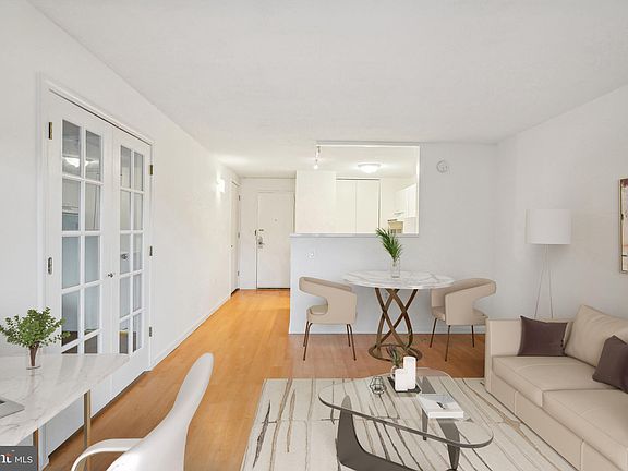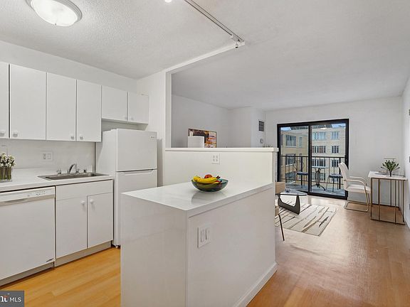 Welcome to 1718 P St NW #803 in the heart of Dupont Circle. This smartly renovated 1 bed/1bath condo has been completely reimagined for modern city living. Unit 803 features an open floor plan with a sun-filled living/dining room and newer LVP floors throughout. This is one of the limited number of units with a private BALCONY overlooking the peaceful rear courtyard. The kitchen has been updated with new countertops and lighting, and nearly new refrigerator. French doors lead to the primary suite, where you will find a refreshed bathroom, featuring new micro-cement finish, and ample storage area. Webster House is a secure building with attended front desk, which handles package deliveries. Amenities include a large ground floor terrace with seating, a rooftop pool with great city views, laundry room on EVERY floor, bike room, storage units and remodeled common areas. The monthly condo fee includes all utilities except Internet. Ideally located, 3 short blocks to Dupont metro, 2 blocks to Whole Foods, Safeway, CVS, and steps from all the restaurants, nightlife, and conveniences that Dupont, Logan, and 17th St have to offer! Inquire with agent about a premium garage parking space available for purchase immediately around the corner from the building.