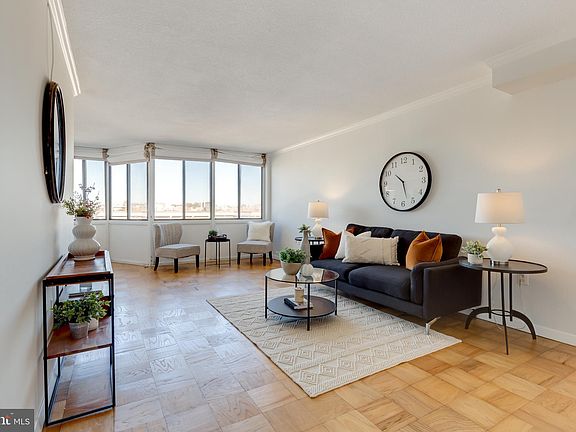 In this lovely, top-floor Dupont Circle condo, a wall of unique, angled windows offers spectacular views of the city and fills this home with natural light. Hardwood floors sweep through the spacious, open living space, which includes a dining space. The kitchen gleams with white cabinetry and stainless-steel appliances. You'll have lots of room to cook with the ample counter space. In the spacious bath, a huge vanity offers plenty of storage and a rain shower brings a tranquil start to the day. The sun-drenched bedroom boasts two closets lined with organizers and drawers, including a large walk-in. In warmer weather, enjoy the rooftop pool and deck with panoramic city views. An on-site concierge will greet your guests and accept your packages. The condo fee covers all utilities. Steps from your front door, join a chess game on the circle, dine at the many restaurants of Dupont and Logan, and shop at local boutiques and Whole Foods. Hop on the metro just 1 block away.