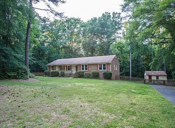 Sad owners relocating! Close-in Powhatan only 5 minutes from 288! Owners are picky and their love and care for this property shows! Very low maintenance all brick exterior home featuring full walkout basement, totally new kitchen, high end replacement windows, beautiful wood floors, new hot water heater, heating and ac systems regularly serviced, chimneys regularly swept, fresh paint and so much more! Fenced rear yard with circle drive that goes all the way around the back of the house and to the detached garage as well. Many trees removed from the back yard making this one just like having your own personal park! This one even has an oversized 1.5 car detached garage, great for car plus work shop area, storage or too many other uses to list! Family room features brick fireplace with gas logs for those cozy evenings at home. The huge basement recreation room includes a brick fireplace with wood burning stove, bar area and pool table for hours of fun or one tremendous man cave! This home has so much to offer that so many homes lack anymore. Properties like this do not come along often. Hurry and see this one or miss out as this one is sure to go quick!