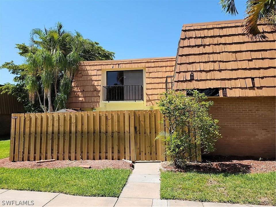 LOCATION LOCATION LOCATION. This is centrally located in S. Ft Myers, close to area schools, shopping & Fine dining. This is a smoking deal for a first-time homeowner. Your new home offers a nice dining area. spacious living room with large sliders to your private courtyard. One full bath downstairs, inside laundry along with a storage area under the stairway. Bedrooms are on the second floor with another full bath - both bedrooms have balconies with a relaxing view overlooking the pool which is only 10 steps away and you have great neighbors.