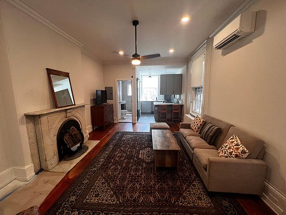 Be the first to live in this beautifully renovated bi-level apartment! 1 bed + den and 1.5 bath. Currently being renovated and will be ready September 1st. First floor is the living room with refinished hardwood floors, marble mantled fire place, granite counter tops and shaker style cabinets in kitchen, complete with half bath and washer/dryer! Walk upstairs with exposed brick into the first room which can be used as a den, office or 2nd bedroom. Large sliding barn door separates the primary bedroom complete with full 3 piece bath. Plenty of storage, and natural light. Managed and operated by landlord. Pets allowed on case by case basis. Dont miss this one! Visit rittenhousing.com for a video walkthrough. Tenant responsible for gas and electric. Owner pays for water.