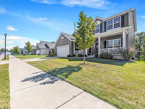 Stunning two story built just four years ago in Winding Bluffs subdivision - a sought after community located near walking trails, parks, restaurants, shopping at Gravois Bluffs, & more! The main floor boasts 9 ft ceilings, luxury laminate floors throughout, and a spacious kitchen w/ center island, stainless steel appliances and gas range (refrigerator included). Adjacent main floor laundry offers convenience! Call this home just in time to enjoy autumn on the low maintenance deck which overlooks gorgeous views, a private & peaceful backyard, and a playground / bonfire area. An open staircase with large picture window leads you to the upper level, where you’ll find four bedrooms including a large primary ensuite. The primary bath features double sinks, soaker tub and separate shower. The full walkout basement is ready for your finishing touches, or to be left as ample storage/workshop space! Peace of mind here with the new systems; tucked away yet a convenient location!