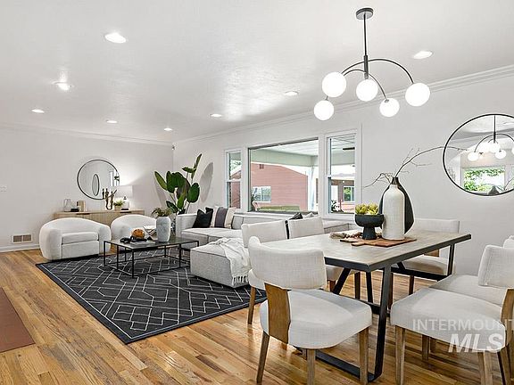 Nestled amidst mature trees and verdant landscaping on a serene 1/4-acre lot, this mid-century brick charmer exudes timeless elegance and modern comfort. Boasting architectural integrity and tasteful updates, you’ll discover an inviting interior featuring original hardwood floors, fresh, neutral paint, modern light fixtures and expansive windows that flood the space with natural light. The kitchen blends vintage charm with contemporary amenities such as stainless-steel appliances, granite countertops, and a walk-in pantry. The open layout seamlessly connects to the tranquil 500 sq ft. covered patio, perfect for entertaining guests or relaxation. Additional highlights include a detached 2 car garage and versatile layout with bonus room AND office options. Historical character meets modern living at every turn! Close proximity to Manitou Park, BSU, downtown Boise, the Boise River and Greenbelt, shopping, dining, and freeway access.