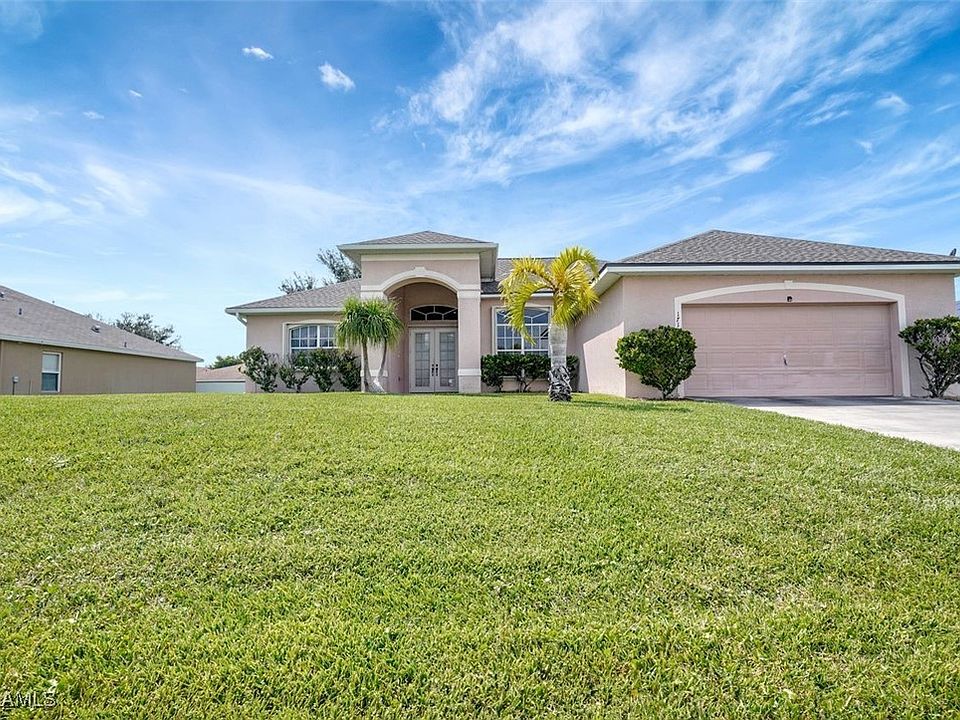 Welcome home to this inviting 3-bedroom, 2-bathroom single-family home with a large flex space, perfect for families or investors. Inside, enjoy the comfort of a brand-new roof, AC system, and water heater, all installed for your convenience. The home’s expansive fenced yard provides plenty of space for outdoor activities, pets, or even a future pool. All Cape coral water and sewer assesments are in and paid.open concept kitchen with updated stainless appliances, breakfast bar, pantry and eat-in kitchen nook all allow for easy entertaining and fun gatherings. The large screened lanai leads into the lush green fenced in private backyard great for grilling, games and outdoor fun! Situated high and dry in a non-flood zone, this home offers peace of mind and is fully equipped for Florida living with accordion hurricane shutters and an LCEC generator hook-up. Located less than a mile to Cape Coral High, Heritage Charter Academy and local fire station. Easy access on and off the Cape with close location to Veterans Parkway! Don’t miss out on this opportunity—schedule your showing today!