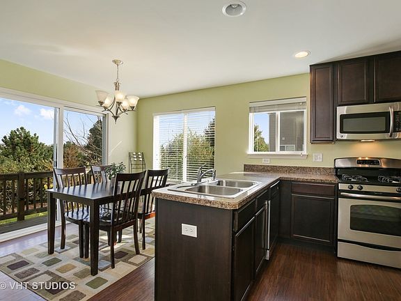 Perfect place to call a home of your own, this end unit with private balcony overlooking a grassy area instead of your neighbors garage, offers 3 bedrooms, 2 full and 1 half bath and a second floor laundry! Nice sized eat-in kitchen with vinyl planking floors and all stainless steel appliances are included. The living room/dining room combination can serve as both or as a huge great room with a cute nook under the stairs, ideal for a quiet reading spot or dog bed. Finished English basement would make a great man cave, craft room or exercise space. Wait, who needs an exercise space when the community clubhouse offers a fitness center, pool and party room all included in your association fees. Close proximity to Routes 72,47,20 and I90, makes this a smart move with everything you could want in a community including a district charter school and a stocked lake for fishing. Investors are welcome as these town houses can be rented too.
