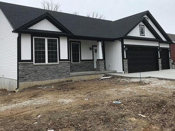 New Construction: This Brand new 3 Bedroom Ranch home will soon be completed and you won't want to miss a chance to see it. Loaded with options like oversized 3 car garage, Craftsman front, walkout basement, backs to trees and woods, 9 ft. ceilings throughout with vaulted Great Room, Kitchen and Breakfast areas. Beautiful Gas Fireplace with stone and a custom mantle. Huge kitchen island with breakfast bar, white custom maple 42 in. cabinets with soft close doors and drawers, Granite Countertops, Stainless Appliances, Gas Range, open staircase, Vinyl Plank flooring and a main floor laundry. Picture is of a recently closed home.