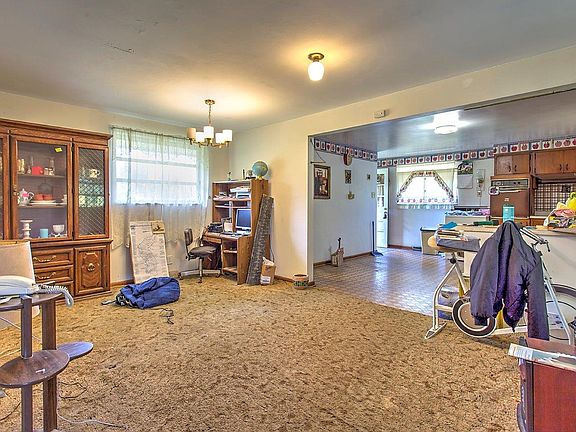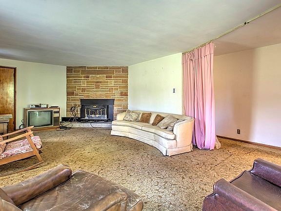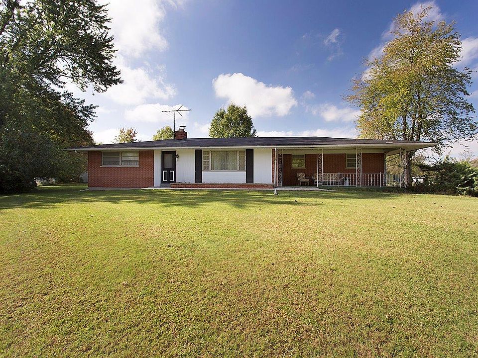 Possibilities galore with the sprawling brick ranch! Features large great room with wood burning fireplace, large eat in kitchen, dining room & full basement! Newer furnace, oversize detached garage with lift, & 1.5 acres of country living. Just a little TLC to bring this beauty back to life! This is an estate sale. Sold As Is.
