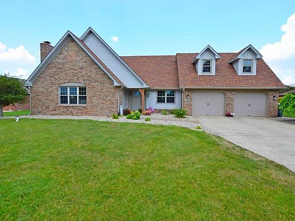 Beautiful custom built home located on a nice lot in Pendleton schools. This large 2 story home features a huge great room with a fireplace and tall vaulted ceilings. Just steps away is a gorgeous kitchen with custom cabinets, granite counter tops, center island and stainless steel appliances. Open to the kitchen is a sizable dining room with hardwood floors flowing through out the dining room and kitchen. The master suite is located on the main level and features a walk in tile shower and walk in closet. Upstairs, three large bedrooms have ample closet space and share a full bath. The two car garage has ample space for storage and vehicles and a storage shed in the back yard adds additional storage. You will love the professional landscape