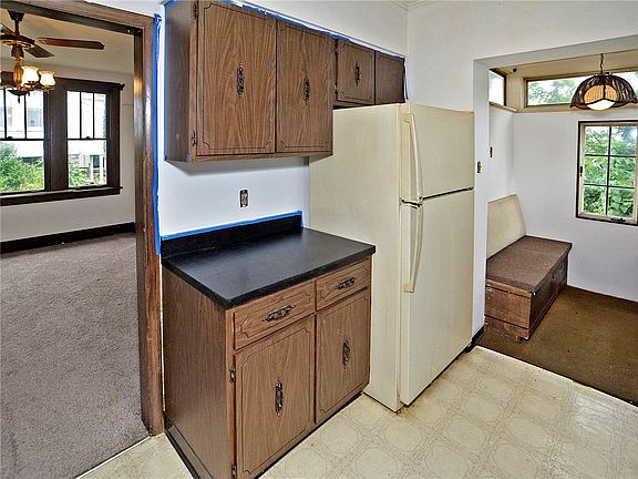 Well maintained with plenty of charm! Freshly painted. Conveniently located 5 minutes from downtown. Original stained glass windows 10 foot ceilings and two decorative fireplaces. Kitchen comes complete with a cozy breakfast nook. The home is set up for central air installation if you want it. Full sized attic could be an additional room. Basement is equipped with a bar and pantry.