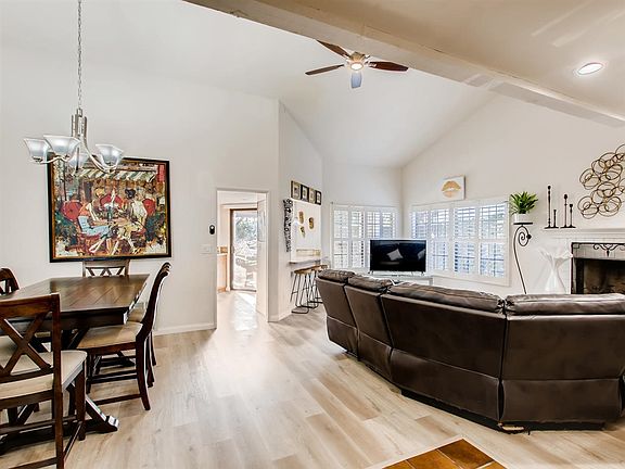 Beautiful home and largest floor plan in highly sought after Fallbrook Village! Spacious 2bed/2bath with vaulted ceilings, ceiling fans, wood laminate flooring, cozy fireplace, Quartz counter tops, natural wood cabinetry and open/bright floor plan. Entertain or relax in your private & fenced patio area with low maintenance landscaping. This home has been meticulously maintained. Community Pool & Clubhouse are just a Few of the Amenities that make this a Great Place to live.