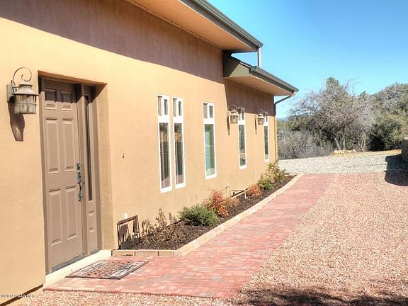 This custom home is located along seasonal Model Creek and is conveniently located just a short distance from Hwy 89, between Wickenburg and Prescott. Great kitchen with dual pantries, quartz counters and cherry cabinetry. Wall to wall accordian doors open the entire great room to a huge covered patio overlooking the creek bed. Stained concrete floors, steel studs, and a metal roof help make this a low maintenance property. Bring the toys, hobbies and other equipment for the 1,200 sqft steel building with another 600 sqft of covered outdoor area and another 600 sqft of added workshop space. A second gate takes you to an area suitable for a horse setup.