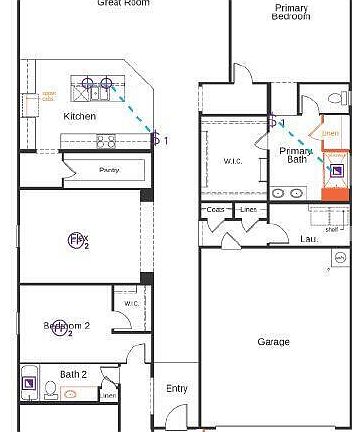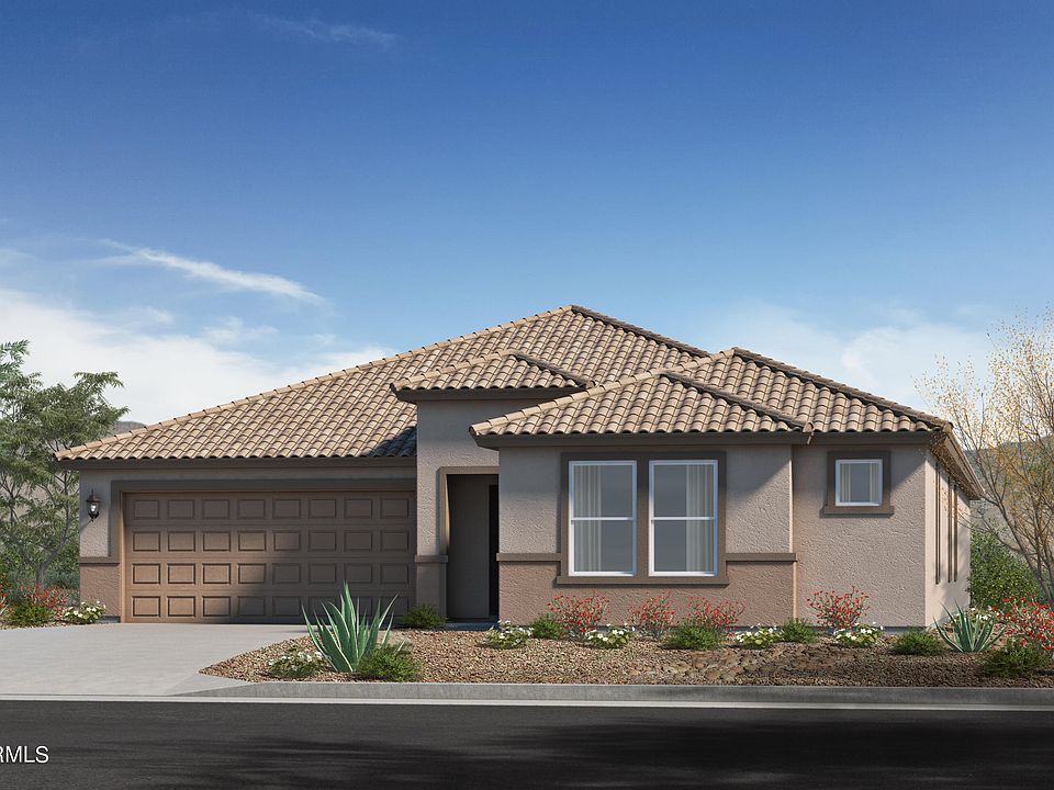This lovely, single-story home features an open floor plan with 9-ft. ceilings and a generous great room leading to an extended covered patio ideal for outdoor entertaining. The modern kitchen showcases 42-in. upper cabinets, a center island, single-basin stainless steel sink, gas stub, granite countertops and Whirlpool® stainless steel appliances. The versatile Flex Space makes for an ideal home office or secondary living area. The primary suite boasts a large walk-in closet and connecting bath with a large walk-in shower, linen closet and dual-sink vanity. Finishing touches of this ENERGY STAR® certified home include ceramic tile flooring throughout, matte black fixtures, dual-pane windows, a radiant barrier roof and Carrier® 14 SEER A/C.