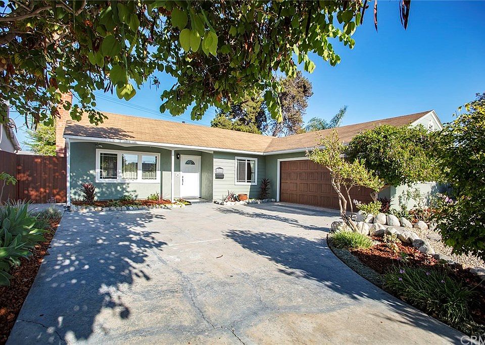 This meticulously remodeled home welcomes you with a beautiful garden of plants & trees and a clean front yard. As you walk into the home you'll notice the new front door and beautiful distressed red oak engineered flooring & cool air from the central AC with variable speed. Spacious rooms with crown molding & 8â baseboards throughout. The living room offers a cozy & a warm fireplace, large windows allow ample natural light into the home, the beautiful high archways lead down the hallway & into the dining room which has two French doors that open to the lush backyard with lime & apple fruit trees, above ground spa, outdoor speakers, a 2nd backdoor w/window shades inside the glass and 7'x7' resin shed. The kitchen boasts granite countertops & pecan maple cabinets w/self closing drawers & cabinets. The bathrooms have been remodeled w/tile showers & glass tile inlay, durable porcelain flooring, seashells & sand in backsplash glass tile in the hallway bathroom, new vanities & lighting. House also features plenty of storage, dual pane windows throughout, 2 panel solid interior doors, laundry room inside home off kitchen, tankless water heater, new 200amp electrical panel, direct access to fully finished garage w/porcelain tile, drywalled & drop down ladder to attic storage area in rafters, fully insulated exterior and interior walls, insulated attic, and beautiful redwood fence. Interior tract location, close to schools, freeway, beach, restaurants, shopping & more.