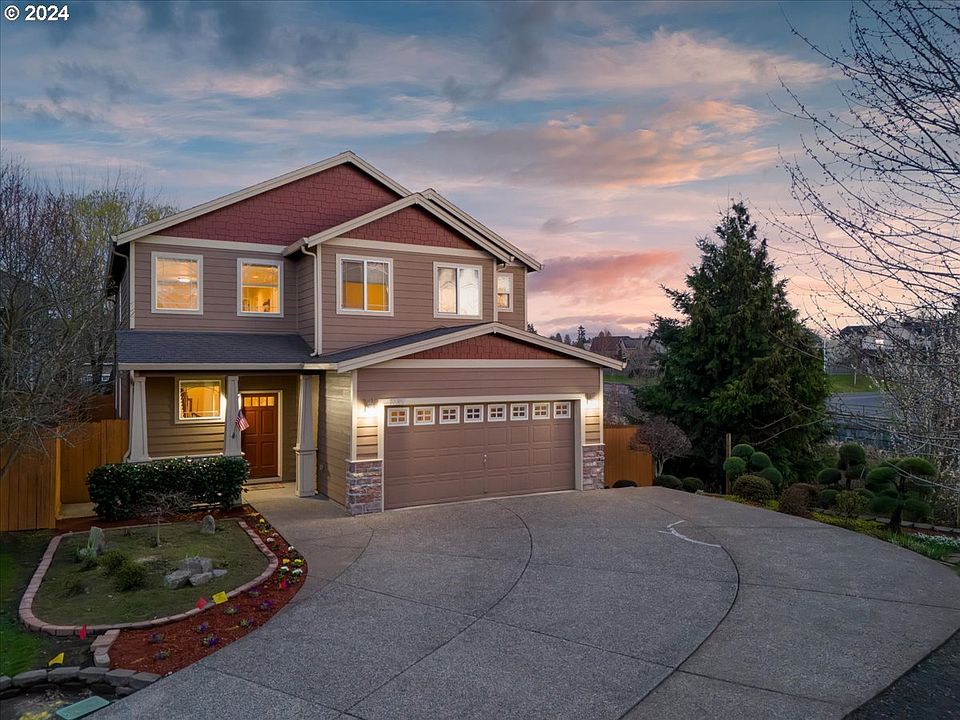 Fall in love with this impeccably maintained craftsman-style home situated on a cul-de-sac next to greenery. Elegant Brazilian cherry hardwood floors grace the main level, complemented by extensive crown moldings throughout. The updated kitchen features granite countertops, a convenient eat-in bar, a butler?s pantry, and top-of-the-line gas cooking and SS appliances. Retreat to the luxurious primary suite, featuring vaulted ceilings, dual walk-in closets, a spacious jetted tub, double vanity, skylight, and tiled floors. Upstairs, discover a generously sized bonus loft with a skylight, perfect for family gatherings. Outside, the fully fenced backyard offers a large, covered patio and a serene garden area. Conveniently located just minutes away from freeways, restaurants, shopping, a recreation center, and Nike headquarters.