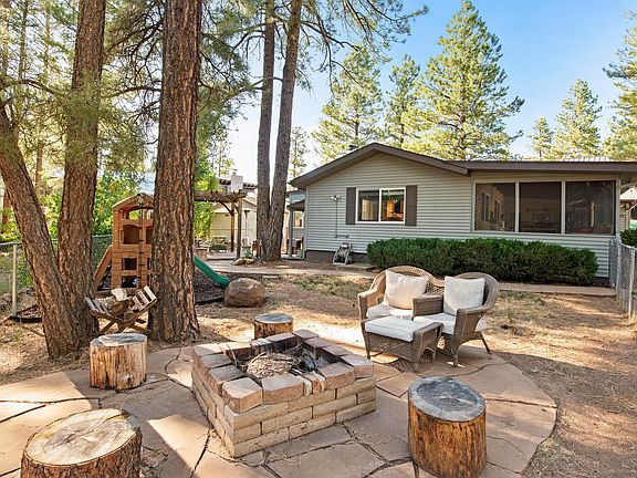 Cozy home in beautiful Munds Park. Located in a cul-de-sac with access to forest service land. 2 spacious bedrooms with new carpet,1.75 bathrooms both have been completely remodeled w/ granite and tile tub/shower surrounds. Living room is very open with vaulted ceilings, wood floors along with a new wood burning stove that will heat the entire home. Back room completely remodeled with new double pane windows, flooring, and added heat-very bright and open. Great space for an office/den/dining room. This has added 161 sq.ft to the home. Front porch is completely enclosed with ample space for entertaining, slumber party or enjoying a good book...windows have removable panels so in the summer you can enjoy the fresh air of the pines. Separate two car garage with a