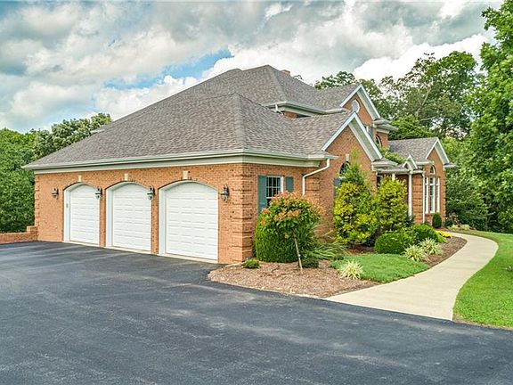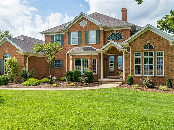 Built right! This all brick 4 bedroom home is rich in character and extraordinary details & offers: a gorgeous two story foyer with a winding staircase that introduces a formal dining room to the left with a trey ceiling & floor to ceiling windows, creating a stylish & comfortable space for entertaining and to the right, a front office; the great room features a vaulted ceiling, a gas-log fireplace with marble surround flanked by built in bookcases & a full wall of floor-to-ceiling windows, delivering spectacular views with sliding glass doors that open to the concrete deck overlooking the scenic backyard. A pass-through Butler's pantry sits between the formal dining room & opens to the kitchen with top-of-the-line stainless appliances, 56'of cabinets with an island, granite counter tops, a walk-in pantry & informal dining area with another set of sliding doors that open to the back deck. The master suite opens with a double door entry, decorative tray ceiling, his & her walk-in closets & an elegant bath with marble tiled flooring, a double vanity, Jacuzzi tub & 4' shower. A half bath & laundry room are located just off the garage. Upstairs you will find 3- spacious bedrooms, a full bath & a landing overlooking the great room. The finished lower level includes: a spacious family room & game/bar area that's separated by built-in curio cabinets with sliding doors on each side with access to the patio; a wet bar with 29' of Cherry cabinets & granite counter-tops; a half bath; 2 storage areas with shelving & patio access. Extra features include; custom Painted mill-work & solid 6 paneled doors; plastered walls with rounded corners & crown molding on the main & upper levels, 6" walls, network wiring & speaker systems, a new roof in 2018. The extra lot next door can be purchased for $89,000