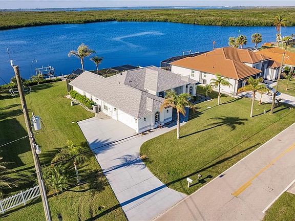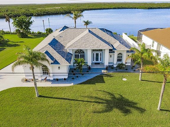 Stunning Waterfront Paradise on the Manchester Waterway - Welcome to your Dream Home! Upon entering this stunning WATERFRONT SAILBOAT access HOME, you will be greeted by soaring ceilings and an open, airy living space with incredible water views. The living room flows seamlessly into the family room, perfect for relaxing or entertaining. Just off the living area, the dining room offers a great spot for meals with a view. The kitchen is a true highlight, featuring beautifully remodeled cabinetry, quartz countertops, and a striking backsplash. It’s equipped with stainless steel appliances (updated in 2019) and a spacious breakfast bar—ideal for casual meals or coffee with a view. Now, let’s head into the master suite. It’s a peaceful retreat with two large walk-in closets and a spa-like en-suite bath with dual vanities, a soaking tub, and a walk-in shower. The best part? The master opens directly onto the lanai, so you can enjoy the soothing water sounds each morning. The other two bedrooms are spacious and share a beautifully updated full bath. Throughout the home, you’ll notice high-end finishes, like wood plank tile floors, crown molding, and impact windows on the waterside. The home has been freshly painted and offers modern upgrades like a new roof (2021) and remodeled bathrooms (2024). Let’s step outside—this screened lanai is where the magic happens. It's perfect for outdoor living with panoramic water views, a heated saltwater pool, and plenty of space for lounging. There’s also a half-bath and outdoor shower for added convenience. The property includes an extra parcel, adding 4,000 sq. ft. for additional space and privacy. Plus, a two-car garage and well for irrigation make this home as practical as it is beautiful. With its prime location, stunning views, and thoughtful updates, this home offers the ultimate waterfront lifestyle. Don’t miss your chance—schedule your private showing today!