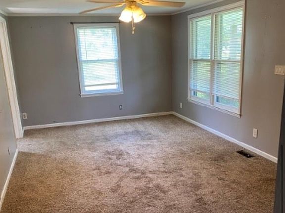 CHARMING RANCH STYLE HOME nestled on .62. Home features large primary bedroom w/ 2 sizeable closets, split bedroom floor plan, kitchen w/ granite countertops, stainless steel appliances, original hardwood floors in the 2nd bedroom, newer floor coverings throughout the rest of the home Barn doors & window pane doors enhance the ambience of this home. Roof installed in 2020, bathroom has granite countertops, large covered porch is ideal for entertaining in the backyard. Backyard features a sizeable outbuilding that is electrified...perfect for an office, workshop /exercise room. No HOA on this large lot with plenty of potential.